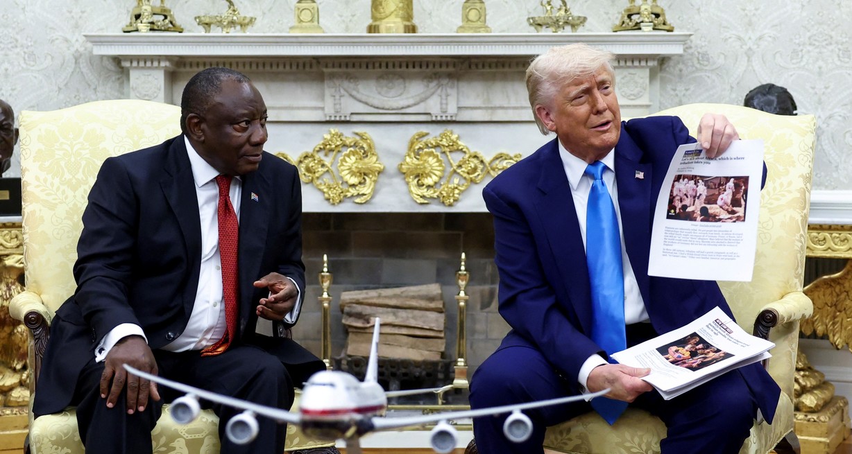 En medio de la reunión bilateral, el presidente de EE.UU. interrumpió el encuentro con fotos y videos que acusaban a su par africano de asesinar a la minoría afrikáner, una narrativa rechazada por organizaciones internacionales y por el propio gobierno sudafricano.