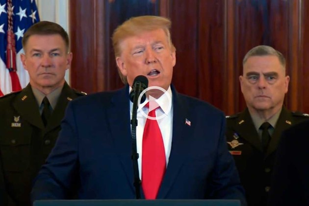 El mandatario brindó una declaración en la Casa Blanca acompañado por el vicepresidente, Mike Pence; el secretario de Estado, Mike Pompeo; el titular del Departamento de Defensa, Mark Esper; y líderes militares.