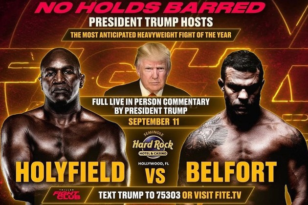 El expresidente de Estados Unidos Donald Trump fue por primera vez comentarista de boxeo en Miami, en la velada en la que el excampeón mundial Evander Holyfield, de 59 años, perdió por nocaut ante Vitor Belfort, de 44.
