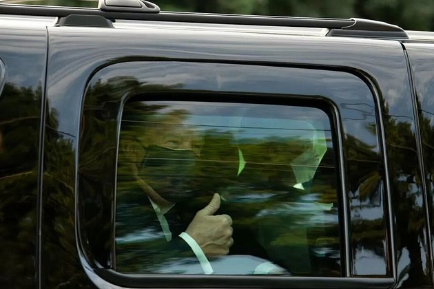 Trump hizo una "visita sorpresa" a sus seguidores fuera del hospital, saludó desde el auto y reingresó