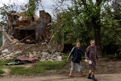 Entre las pintadas dejadas por los rusos como recuerdo de su presencia aparecen ahora otras nuevas advirtiendo de las minas que estos han dejado sembradas en su huida. Desde el 6 de septiembre, el ejército local ha puesto en marcha una gran ofensiva que ha liberado de ocupantes casi toda la región de Járkov.