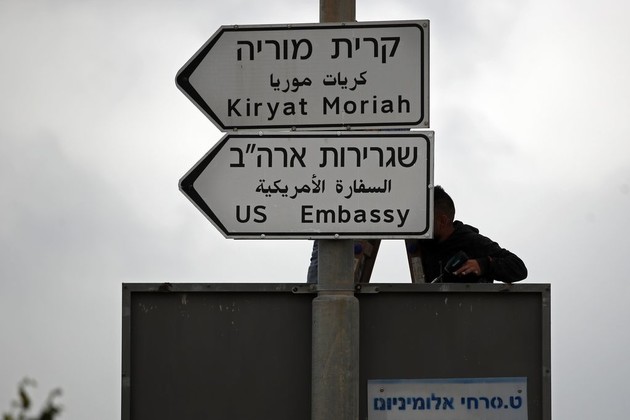Operarios comenzaron a instalar señales callejeras que indican el camino a la Embajada de Estados Unidos en Jerusalén, cuyo traslado oficial e inauguración están previstos para el próximo lunes 14 de mayo, aniversario de la creación del Estado de Israel.