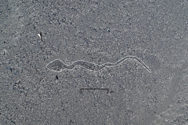Los geoglifos, enormes figuras talladas en el desierto sudamericano, datan de hace más de 2.000 años y representan seres humanos, felinos, serpientes, orcas, aves y camélidos autóctonos, animales como llamas, guanacos y alpacas.