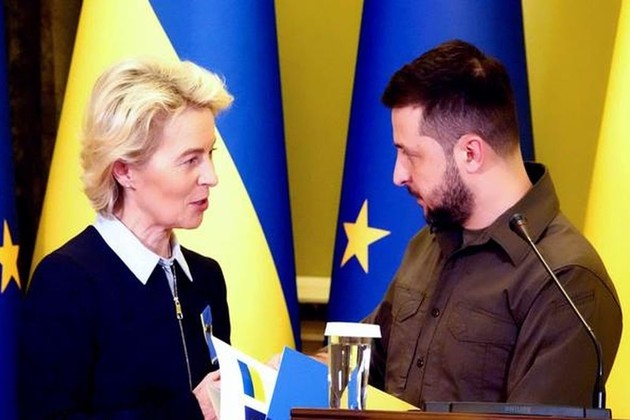 Von der Leyen avanzó que la Comisión elaborará el informe sobre la candidatura ucraniana "en semanas", una vez que responda a las preguntas del informe que ella misma le entregó en mano. "Este es un paso importante para llegar a la UE", le dijo Von der Leyen a Zelenski mientras le entregaba el sobre con el documento en una rueda de prensa en el Palacio Presidencial en Kiev.