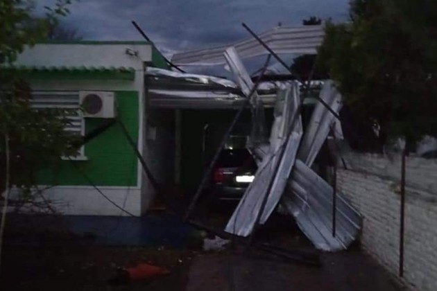 Los fuertes vientos provocaron daños en casas y galpones, voladura de techos, caída de cables e innumerables daños en mobiliario urbano.