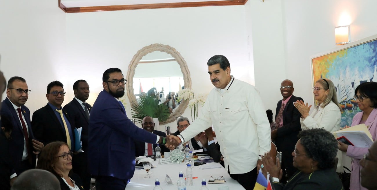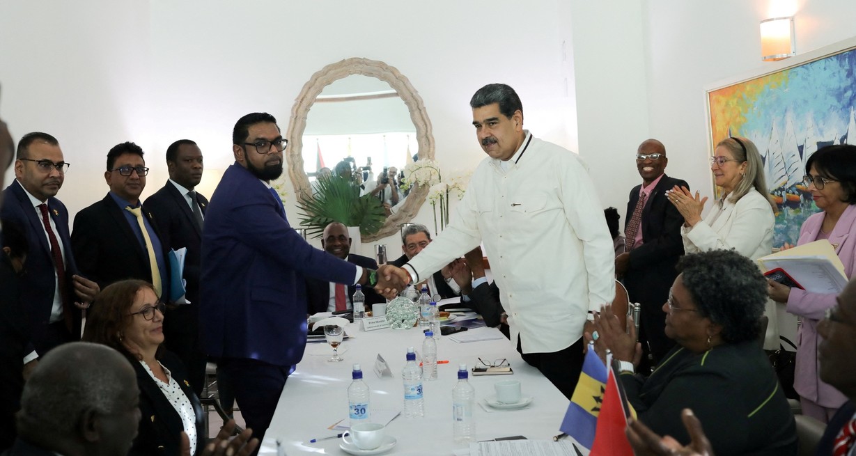 Guyana y Venezuela "acordaron que directa o indirectamente no se amenazarán, ni utilizarán la fuerza mutuamente en ninguna circunstancia, incluidas las derivadas de cualquier controversia existente entre ambos Estados", indicó una declaración conjunta leída por Ralph Gonsalves, primer ministro de San Vicente y las Granadinas, sede del encuentro.