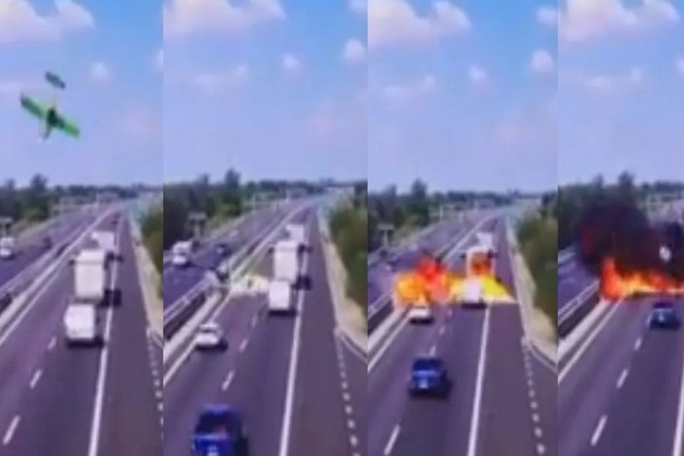 Según fuentes oficiales e informes de medios italianos, la aeronave cayó en picada sobre la autopista alrededor del mediodía, y al estallar se convirtió en una bola de fuego que envolvió varios vehículos cercanos Las imágenes del accidente muestran el motor golpeando primero, seguido de una explosión visible desde varios metros de distancia.