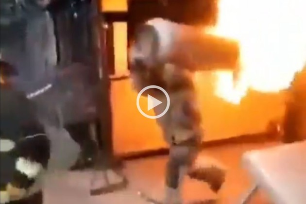 El hombre levantó el tanque de aproximadamente 30 kilos y lo sacó del interior del local gastronómico con la intención de que sus compañeros apagaran el fuego. De esta manera, el cilindro no explotó en el interior y no provocó una tragedia.