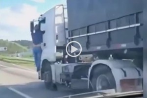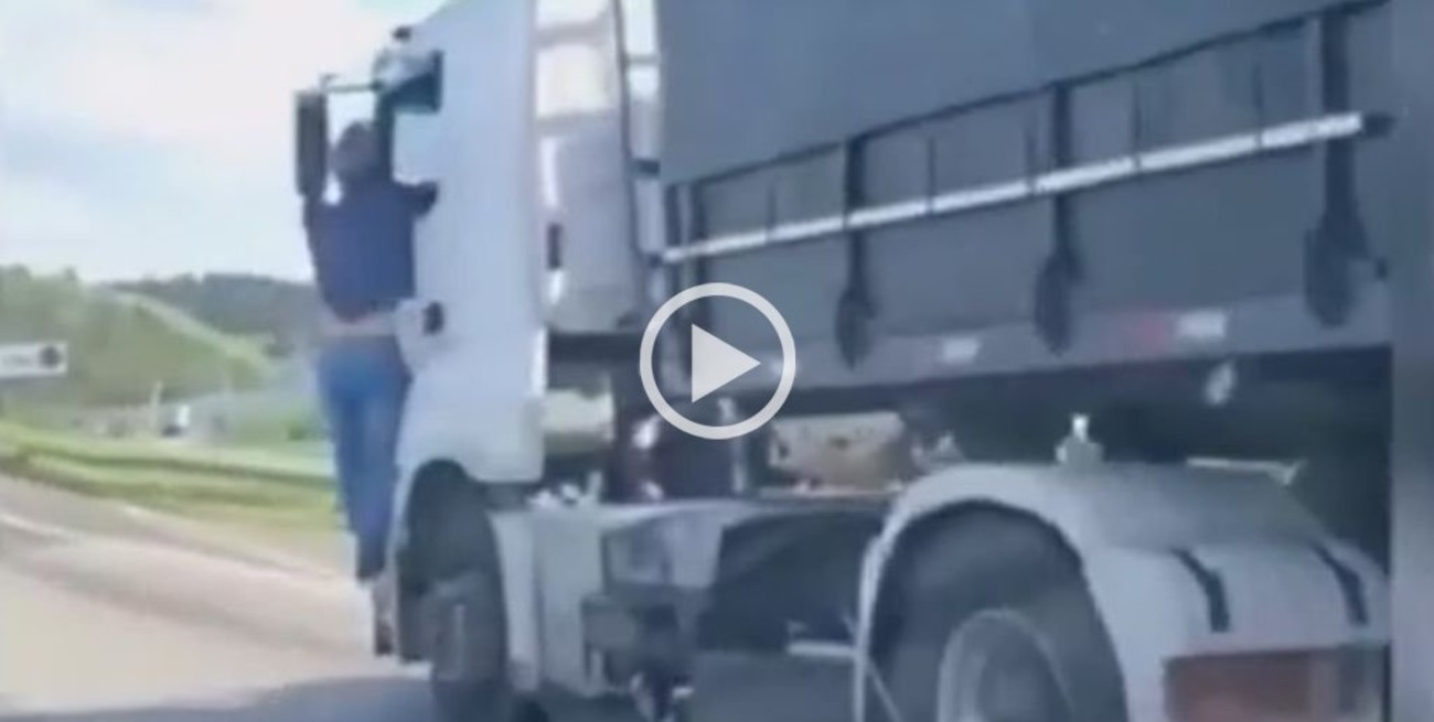 El camionero, lejos de asistir a las víctimas, decidió continuar la marcha y, en ese momento, el motociclista se aferró a la puerta del camión para que no escape.