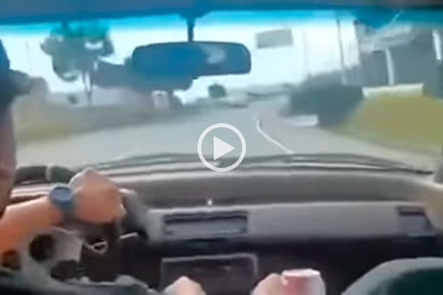 El video comienza en el momento exacto en que el conductor acelera mientras los otros dos acompañantes gritan y ríen por el desafío de ir a gran velocidad. Inmediatamente, intenta desacelerar el auto para tomar una curva peligrosa sin embargo pierde el control.