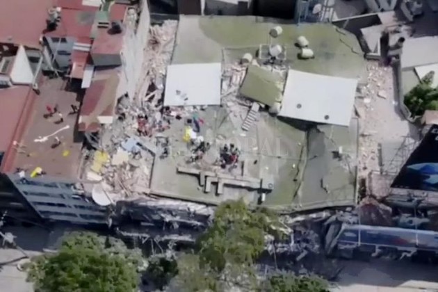 Desde las alturas se pudo captar a los rescatistas buscando a personas bajo los escombros de los edificios que cayeron luego del sismo de 7.1 de magnitud.