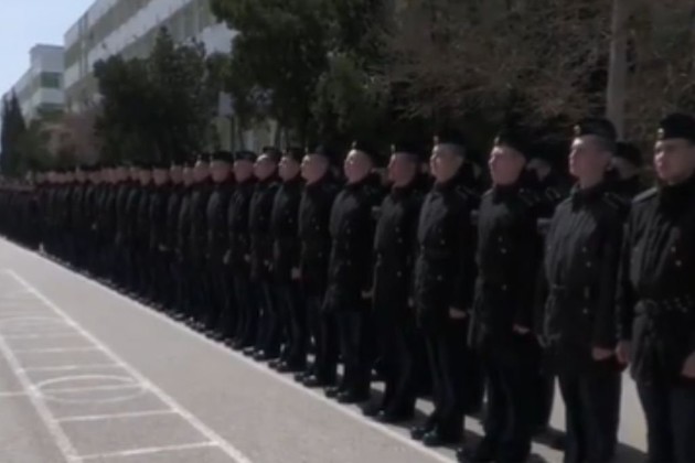 En la grabación, de unos 30 segundos, se ven varias decenas de hombres vestidos con uniformes de la Marina, alineados frente al jefe de la Marina, Nikolai Yevmenov.