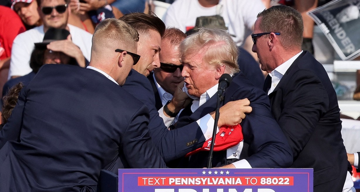 Por encima de él se lanzaron al menos una decena de agentes del Servicio Secreto, que lo cubrieron en el suelo. Al levantar, se pudo observar sangre en el rostro de Trump por una supuesta herida en la oreja.