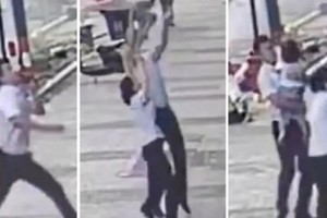 Al ver la escena, Shen hizo un rápido movimiento y logró atajar a la pequeña de dos años.