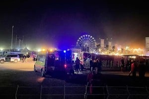 Los servicios de emergencias reportaron la caída de varias estructuras y partes del escenario principal y de la entrada del recinto debido a fuertes rachas de viento.