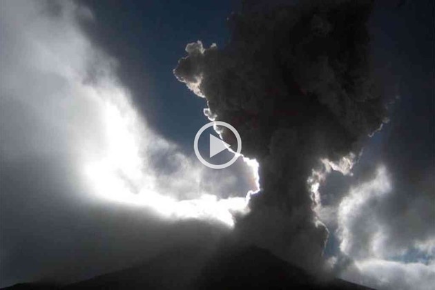 En la madrugada de este sábado el volcán Popocatépetl entró en erupción, lanzando una fumarola y fragmentos incandescentes.