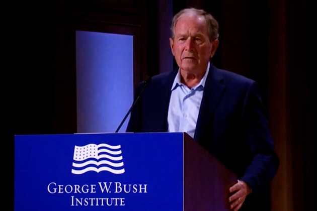 En su discurso, el exmandatario cargó contra "la decisión de un hombre de lanzar una invasión totalmente injustificada y brutal de Irak -quiero decir de Ucrania"-, se corrigió de inmediato ante los asistentes en el George W. Bush Presidential Center, de Texas.