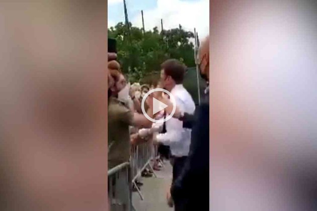 Video: un hombre le pegó una cachetada al presidente Macron en pleno acto electoral