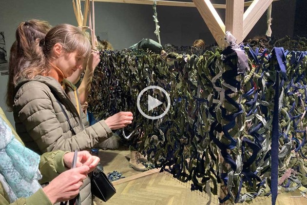 En esta ocasión, el corresponsal Bryan Mayer visitó un centro de ensamblaje “casero” de camuflaje elaborado por civiles autoconvocados de la ciudad de Lviv.