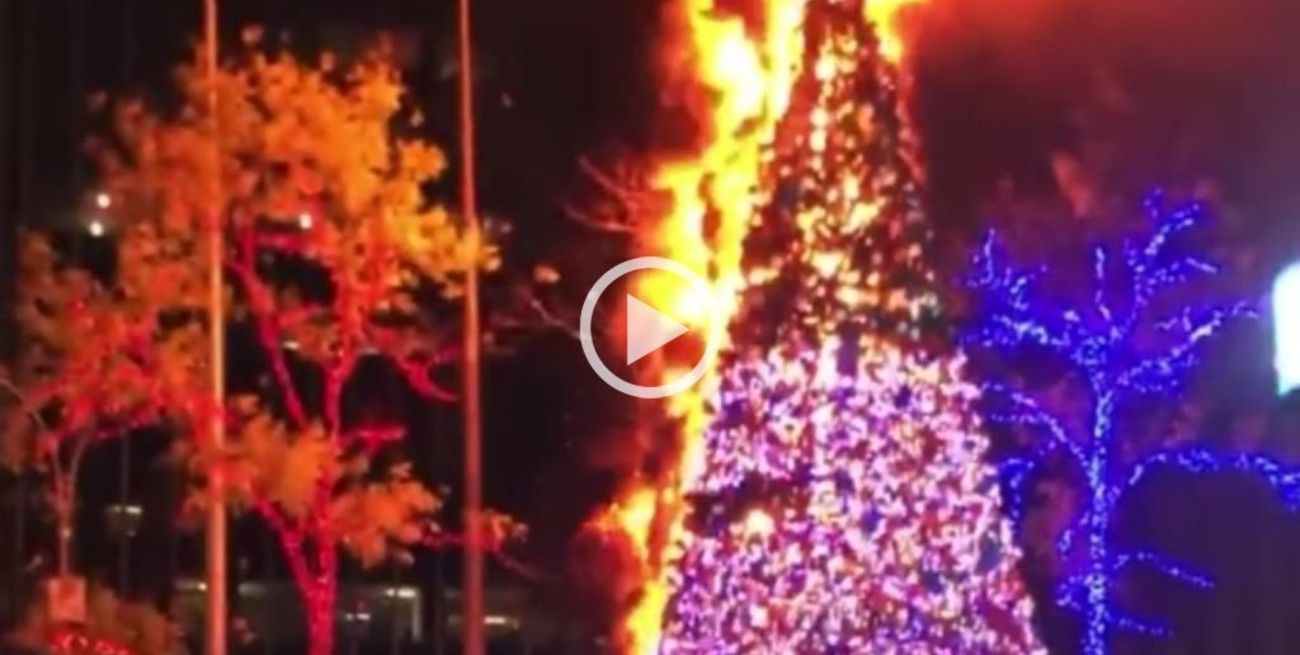 El incendio ocurrió poco después de la medianoche del martes. Fotos y videos de la escena que se viralizaron en redes sociales muestran el árbol en llamas.