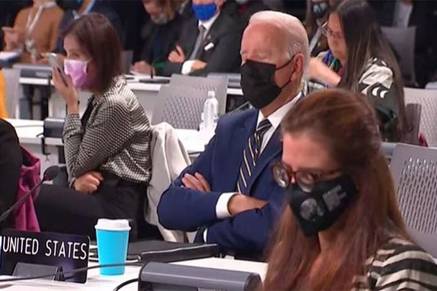 Una curiosa imagen del presidente de los Estados Unidos con los ojos cerrados durante la conferencia de apertura de la Conferencia de las Naciones Unidas sobre el Cambio Climático (COP26) sorprendió al mundo.