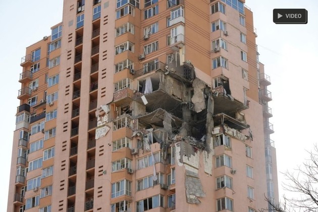 Klitschko publicó una imagen en una aplicación de mensajería que mostró un enorme agujero en uno de los laterales del edificio que había arrasado varios departamentos.