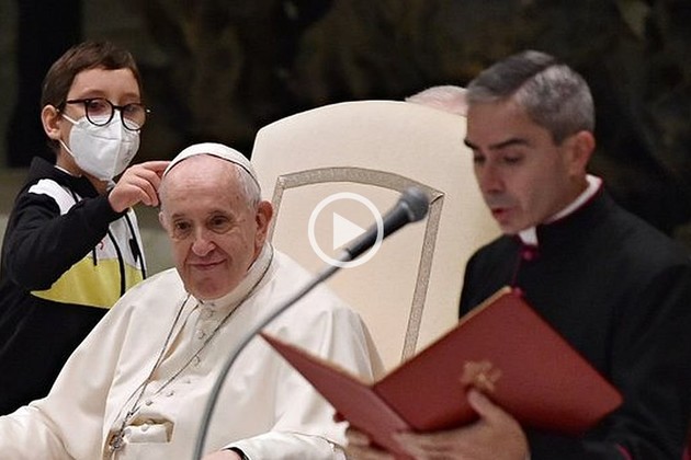 Francisco lo tomó de las manos, le sonrió y conversó, hasta que el chico se sentó en una silla reservada a los cardenales ante la mirada divertida del papa. Tras aparecer varias veces se marchó después de haber obtenido como regalo el famoso solideo tras lo cual regresó con la madre, entre los asistentes a la audiencia.