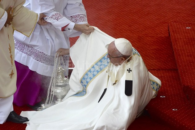 El tropezón se produjo apenas comenzaba la misa en el santuario de la Virgen de Jasna Gora -la más venerada por el pueblo polaco- y Francisco fue rápidamente asistido.