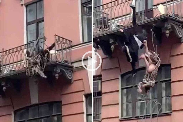 Video: una pareja cayó desde un balcón en medio de una discusión