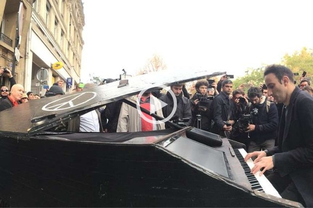 Este sábado, un artista francés llegó en bicicleta hasta el lugar de uno de los ataques, el teatro Bataclán, e interpretó con un piano Imagine, la afamada canción de John Lennon. Quienes estaban presentes en ese momento filmaron la escena.