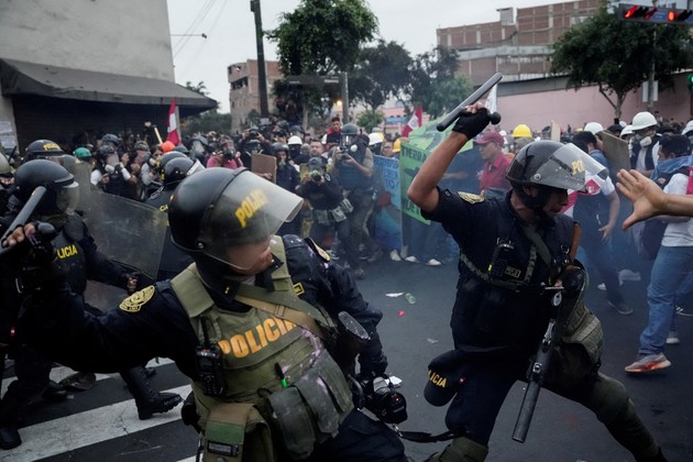 Sin embargo, imágenes publicadas por varios medios peruanos muestran a los efectivos de la Policía Nacional disparando con material antidisturbios directamente al cuerpo de los manifestantes.