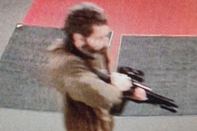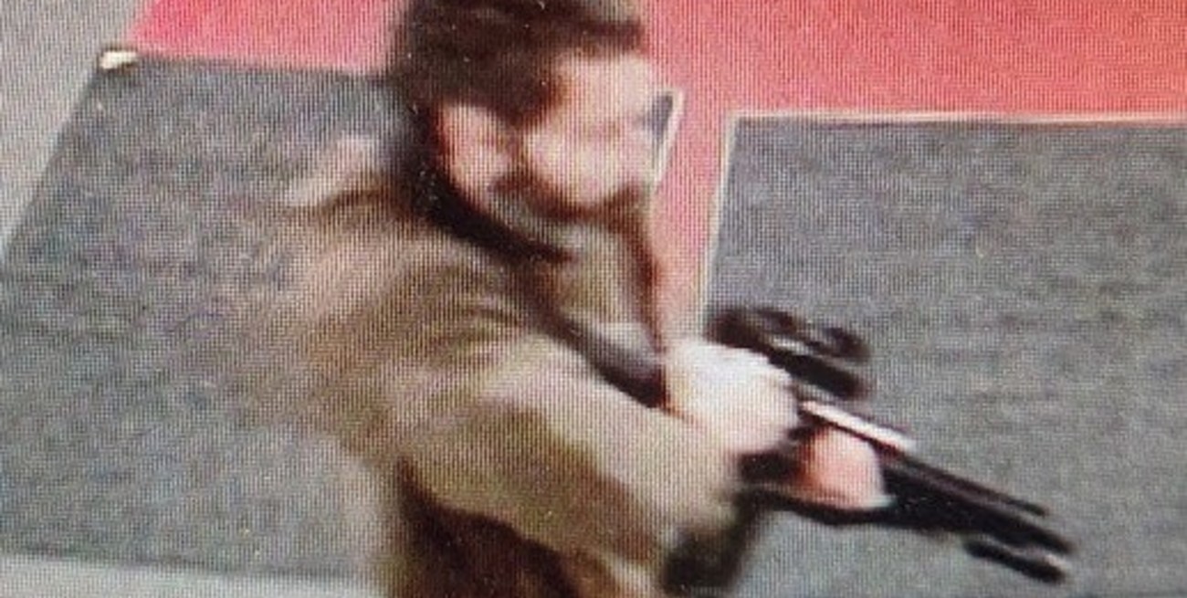 Fotos divulgadas del sospechoso muestran a un hombre con barba, vestido con una chaqueta marrón, pantalones azules y zapatos marrones, con un rifle semiautomático.