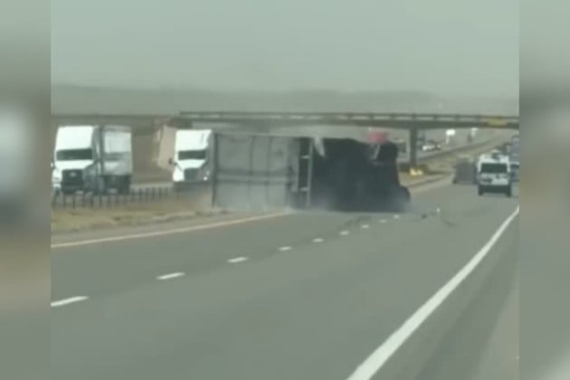 En las inmediaciones de Oklahoma City, un camión de carga perdió el control de manera espectacular debido a las fortísimas ráfagas de viento que azotaron la región durante la jornada, provocando un accidente que pudo haber terminado en tragedia.