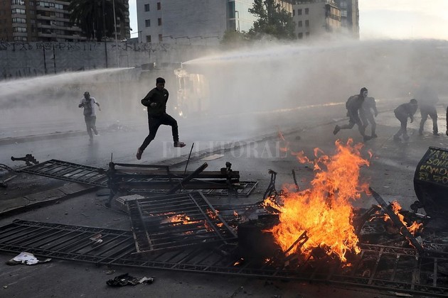 Sin embargo, por la tarde, a unas cuadras de Plaza Italia, cientos de manifestantes se enfrentaron con la policía, que los dispersó con chorros de agua y gases lacrimógenos, y hubo incendios y saqueos a comercios.