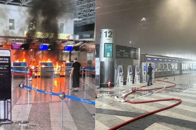 El agresor, que según las autoridades no era pasajero, se dirigió directamente al mostrador de check-in número 13. Con un martillo en mano y un líquido inflamable, comenzó a golpear las pantallas y a prender fuego el lugar.