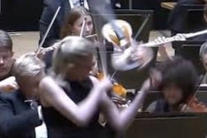 Un concierto de música clásica quedó marcado por un accidente inesperado cuando un violín valuado en cerca de un millón de dólares salió despedido y cayó al suelo en medio de la presentación. El episodio ocurrió durante una interpretación de la solista finlandesa Elina Vähälä, mientras tocaba una obra del compositor Max Bruch.