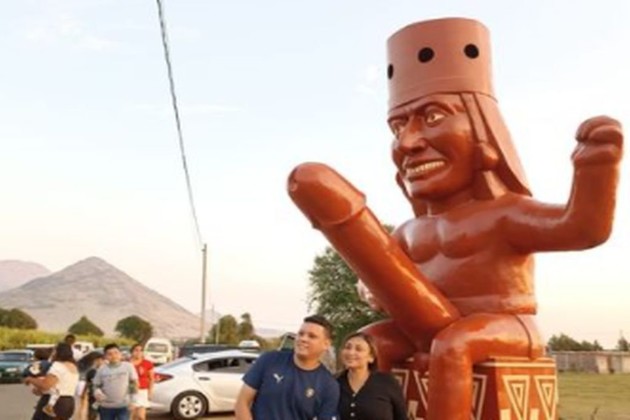 En vísperas del Año Nuevo, la municipalidad de Moche, ubicada en la costa norte de Perú, inauguró una réplica de tres metros de altura de una cerámica preincaica, que representa a un hombre indígena sosteniendo su miembro viril erecto.