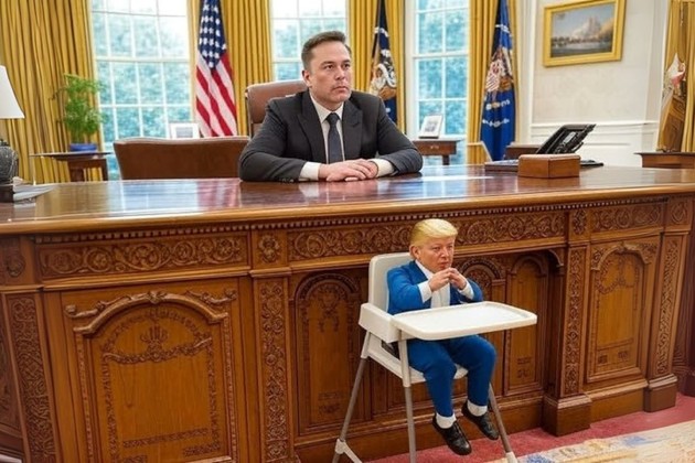 En algunos de los memes se muestra a Trump sentado en una silla de bebé en la oficina presidencial, mientras Musk se sienta en una sillón grande del escritorio. En otra se representa a Musk como un rey sentado en su trono, mientras Trump le ofrece una reverencia a sus pies.