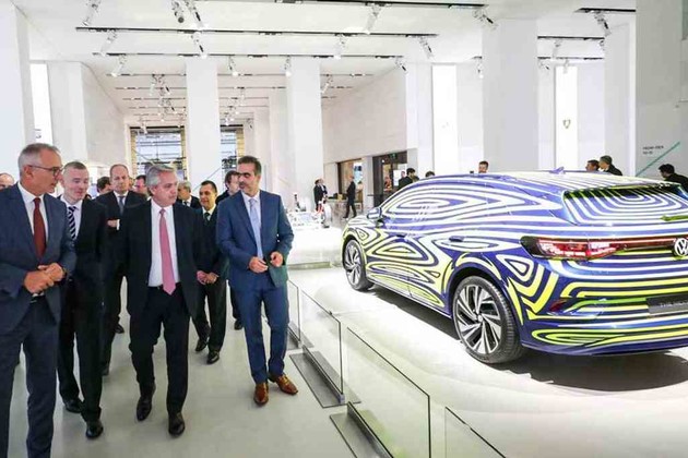 Fernández, junto a parte de la delegación oficial, firmó el libro de visitas, y también subió a un prototipo de auto eléctrico, el ID.3, que saldrá al mercado en Alemania en junio de 2020.