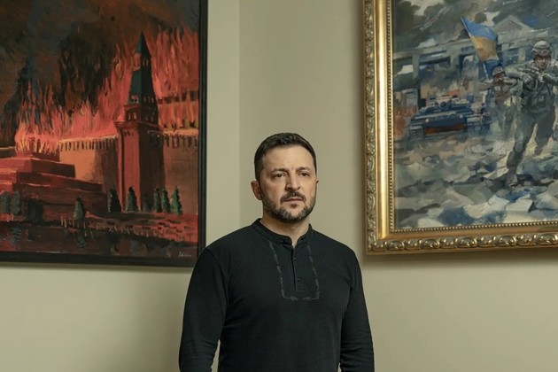 La revista estadounidense Time publicó un artículo con una foto del presidente de Ucrania, Volodímir Zelenski, posando en su despacho delante de un cuadro que muestra la Plaza Roja de Moscú en llamas.