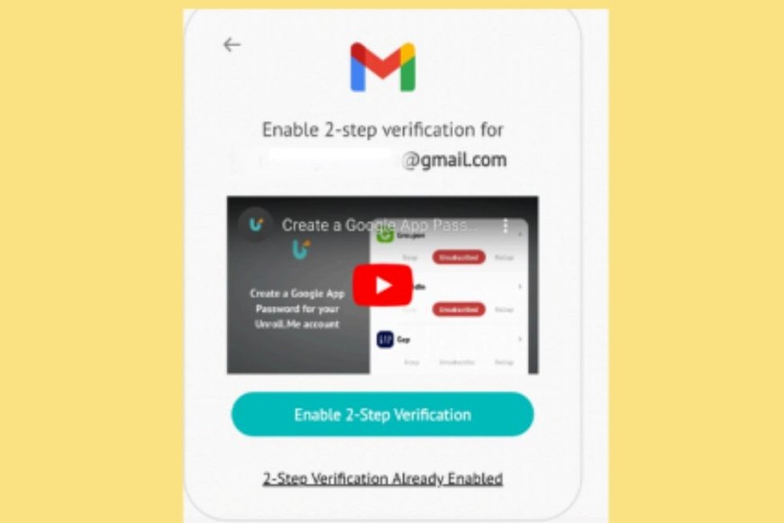 3.Luego, tenemos que crear una contraseña para la aplicación. Para ello, tenemos que presionar el botón azul superior. Esto nos redirigirá a nuestra cuenta de mail, donde podemos ponerle nombre a la aplicación (en este caso, Unroll.me) y nos devolverá una contraseña de 16 dígitos (que podemos copiar presionando las teclas Ctrl+C o Command+C).