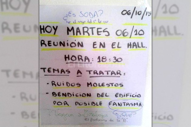 En el temario del día apareció “bendición del edificio” por un aparente espíritu que vive allí.