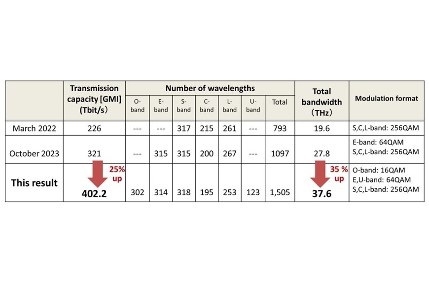 Se trata de un ancho de banda de transmisión óptica agregado récord de 37,6 THz que permite una velocidad de datos de 420 teras por segundo en una fibra óptica estándar.