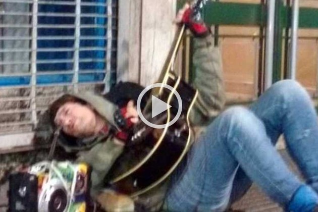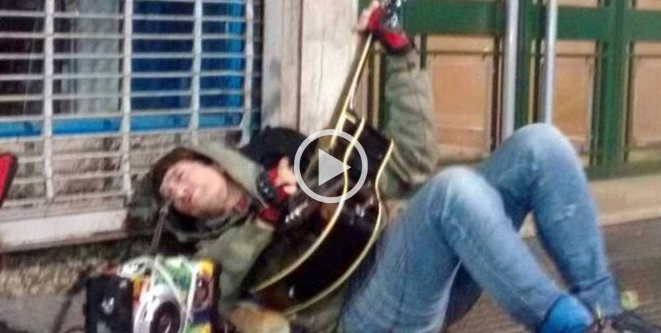 La radio Vorterix publicó un video que se lo ve al líder de Viejas Locas, interpretando "Fuego", uno de sus éxitos. El rockero está tirado con su guitarra en plena calle Corrientes en el centro de la ciudad de Buenos Aires.