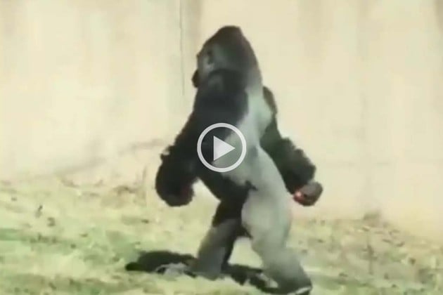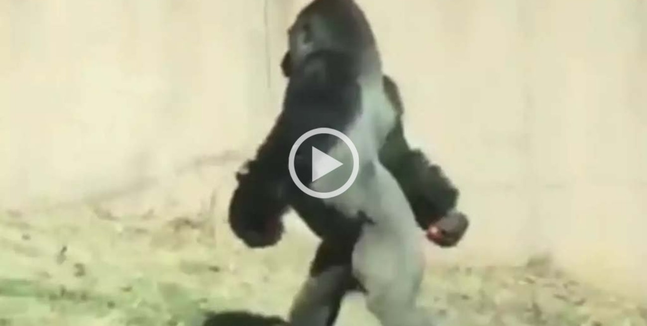 Un gorila sorprendió a todos los presentes cuando de repente comenzó a caminar erguido como un humano para no ensuciarse sus extremidades superiores