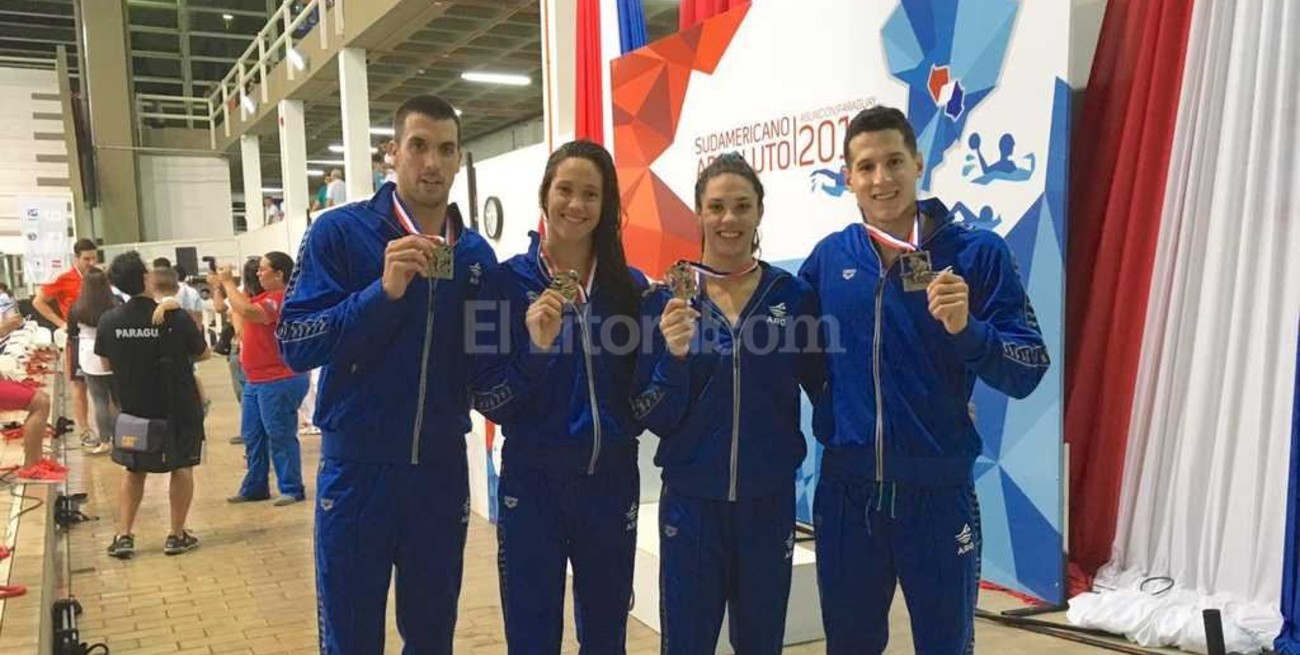 En el marco del Sudamericano de natación que se disputa en la pileta del Centro Acuático Nacional de Asunción del Paraguay, Santiago Grassi ganó la medalla dorada en la posta 4×100 combinado mixto junto a Federico Grabich, Andrea Berrino y Macarena Ceballos con un tiempo de 3 minutos 52 segundos y 31 centésimas.