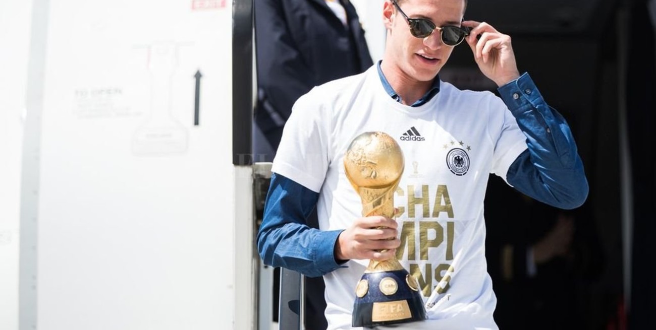 En la imagen, se observa al capitán de su equipo, Julian Draxler, con una Copa del Mundo de juguete y la leyenda: "Traeme la Copa Juli, traeme la Copa".