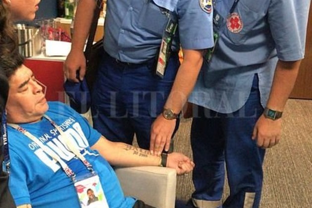 Sobre el final, Maradona se peleó con hinchas que estaban cerca de su lugar y tras el festejo, se lo llevaron al palco descompensado y lo sentaron en una silla.