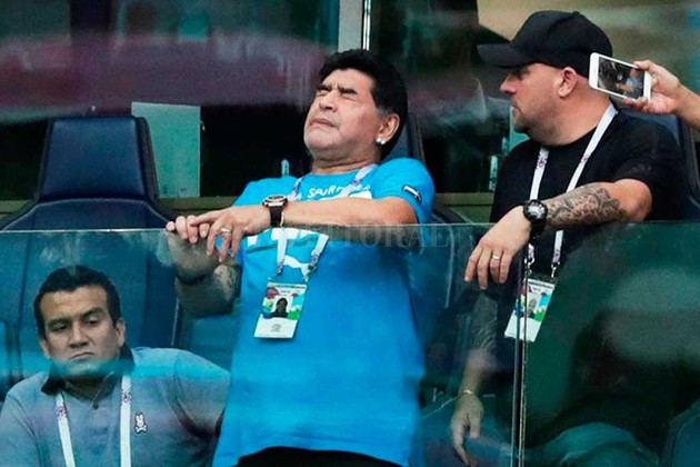 Un “show” aparte protagonizó Diego Armando Maradona en un palco de la cancha. El ex entrenador del seleccionado, fiel a su estilo, gritó, se mufó y sufrió a flor de piel el vibrante partido. A través de las redes sociales, rápidamente comenzaron a circular imágenes de Maradona hasta que las fotos lo mostraron como si estuviese durmiendo y luego, cómo lo retiraban para ser asistido por médicos.