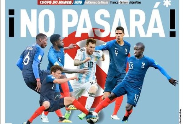 El diario deportivo L'EQUIPE, pone en su tapa una imagen editada de Messi junto a varios jugadores franceses con el lema: "No pasará".